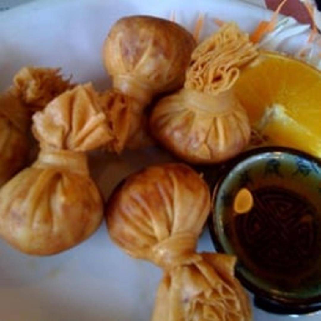 Crispy golden purses filled with a savory mixture of ground chicken, shrimp, and vegetables. Served with a sweet chili dipping sauce.