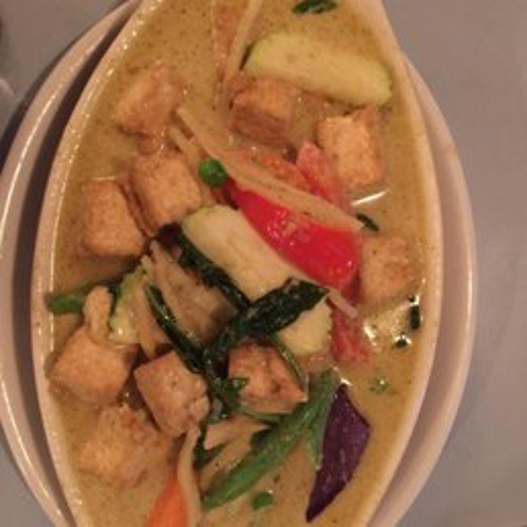 A spicy and aromatic curry with bamboo shoots, bell peppers, green beans, basil, and your choice of protein in a coconut milk-based green curry sauce.