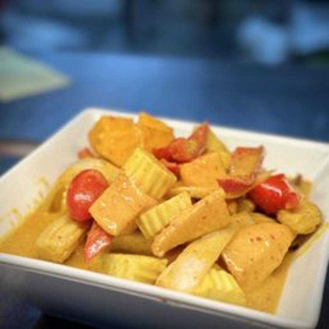 A creamy and fragrant curry with ripe mangoes, bell peppers, onions, and your choice of protein in a coconut milk-based curry sauce. A sweet and savory delight.