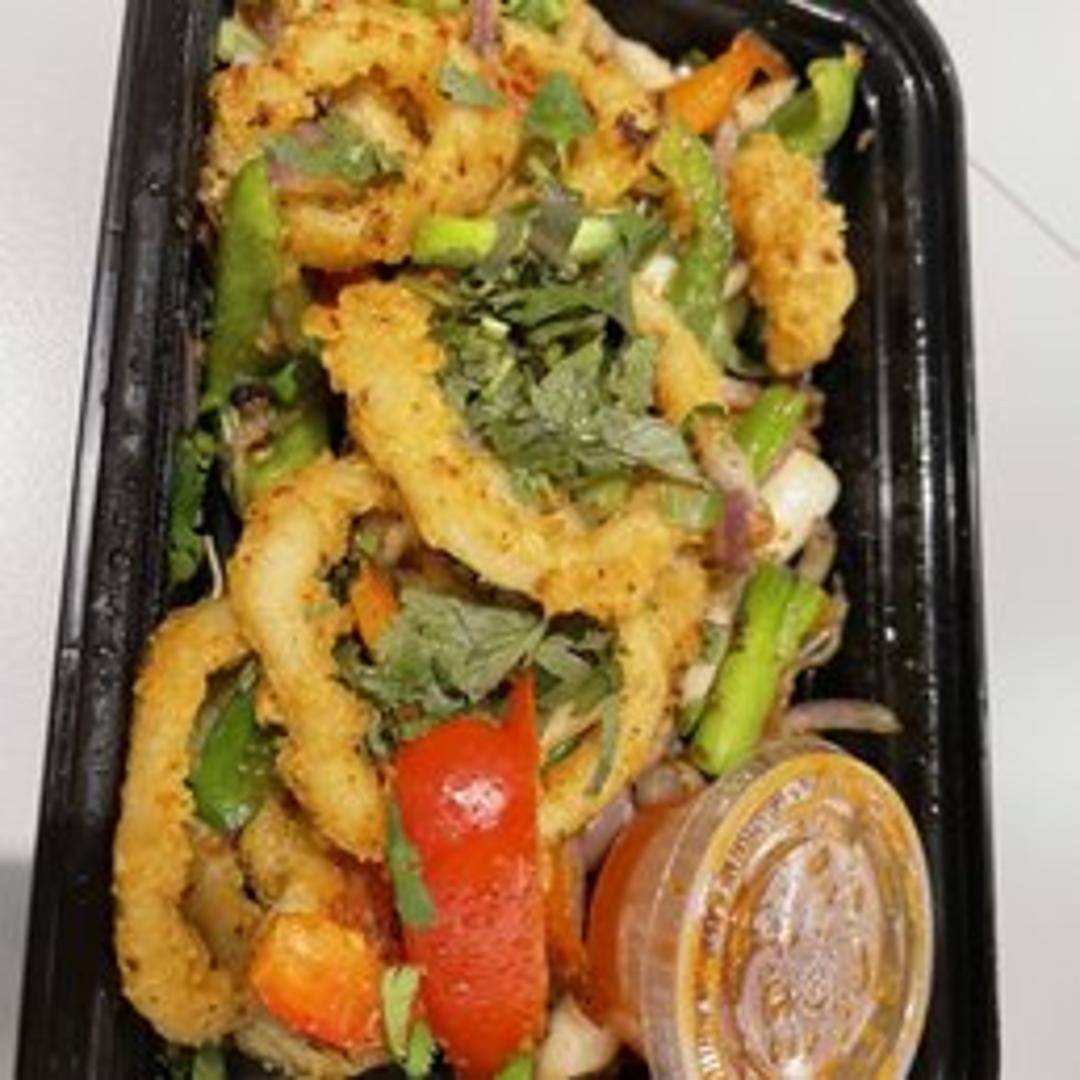 Calamalao is Laos In Town's take on a delectable squid dish, prepared with a distinct Laotian flair. This offering typically features tender, perfectly cooked pieces of squid, which may be lightly fried to a crispy texture or expertly stir-fried with savory seasonings. Depending on the specific preparation, it could be tossed in a vibrant, tangy, and spicy dressing infused with fresh herbs and chilies, or simply seasoned and served with a complementary dipping sauce that highlights the natural sweetness of the calamari. It provides a unique and flavorful seafood experience.