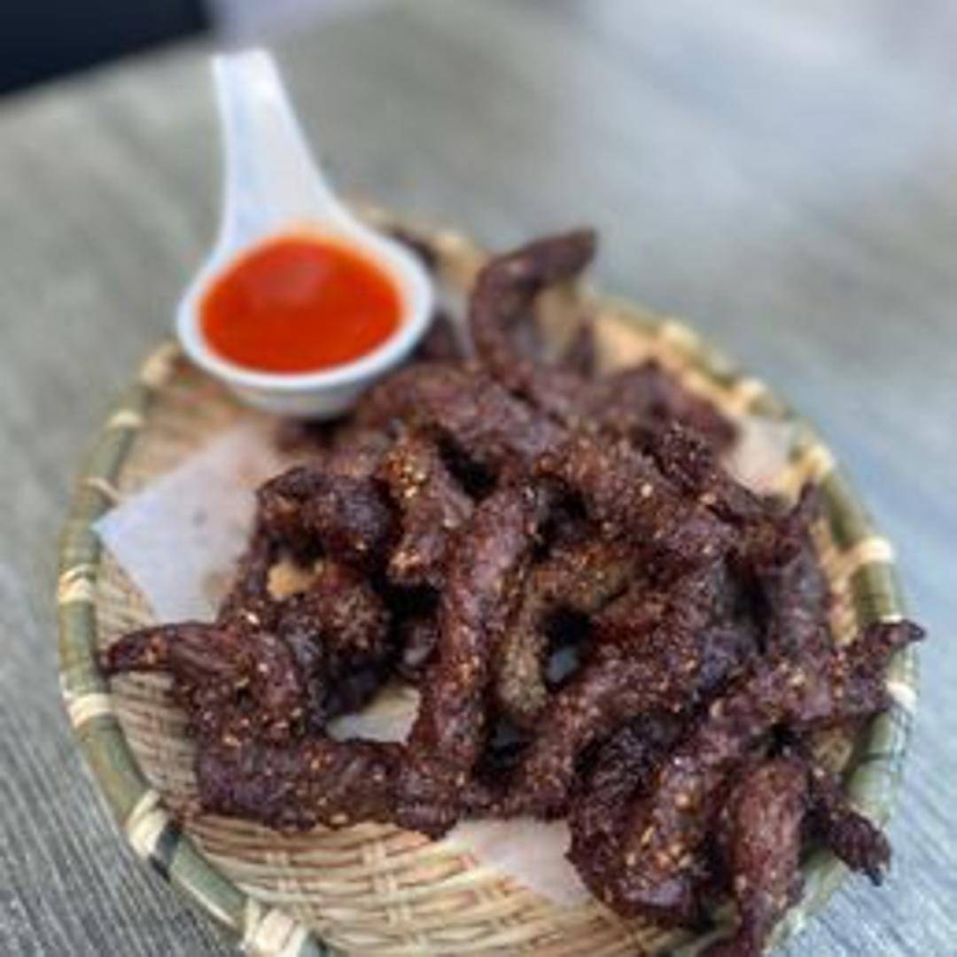 Indulge in the rich and flavorful Grilled Pork Shoulder, a Laotian specialty. Marinated with a unique blend of aromatic spices and herbs, the pork shoulder is grilled until tender and slightly caramelized, offering a smoky, juicy, and deeply satisfying culinary experience.