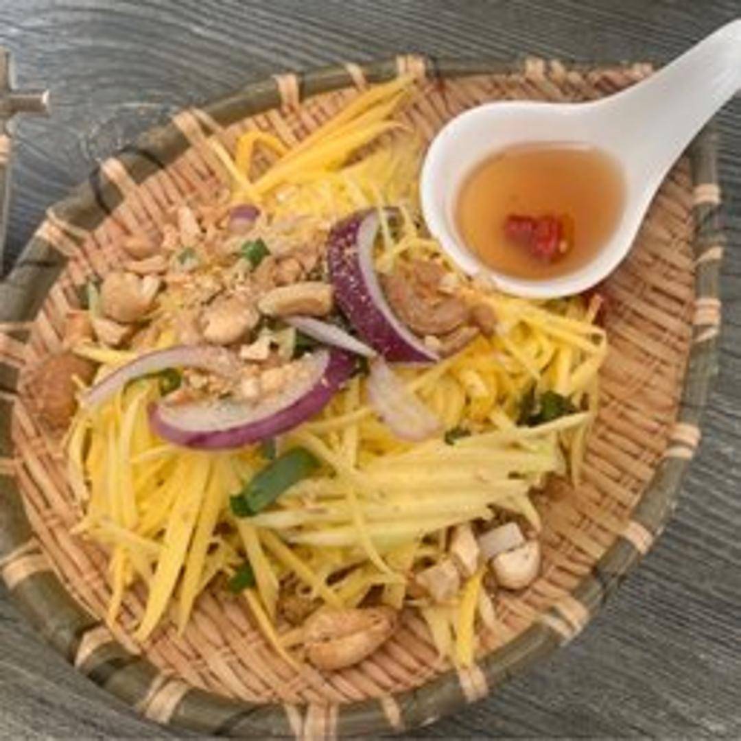 Experience the vibrant and refreshing Mango Salad, a delightful blend of fresh, ripe mango slices, crisp vegetables, and herbs, tossed in a tangy and savory dressing. This salad offers a perfect balance of sweet, sour, and spicy notes, characteristic of Laotian cuisine.