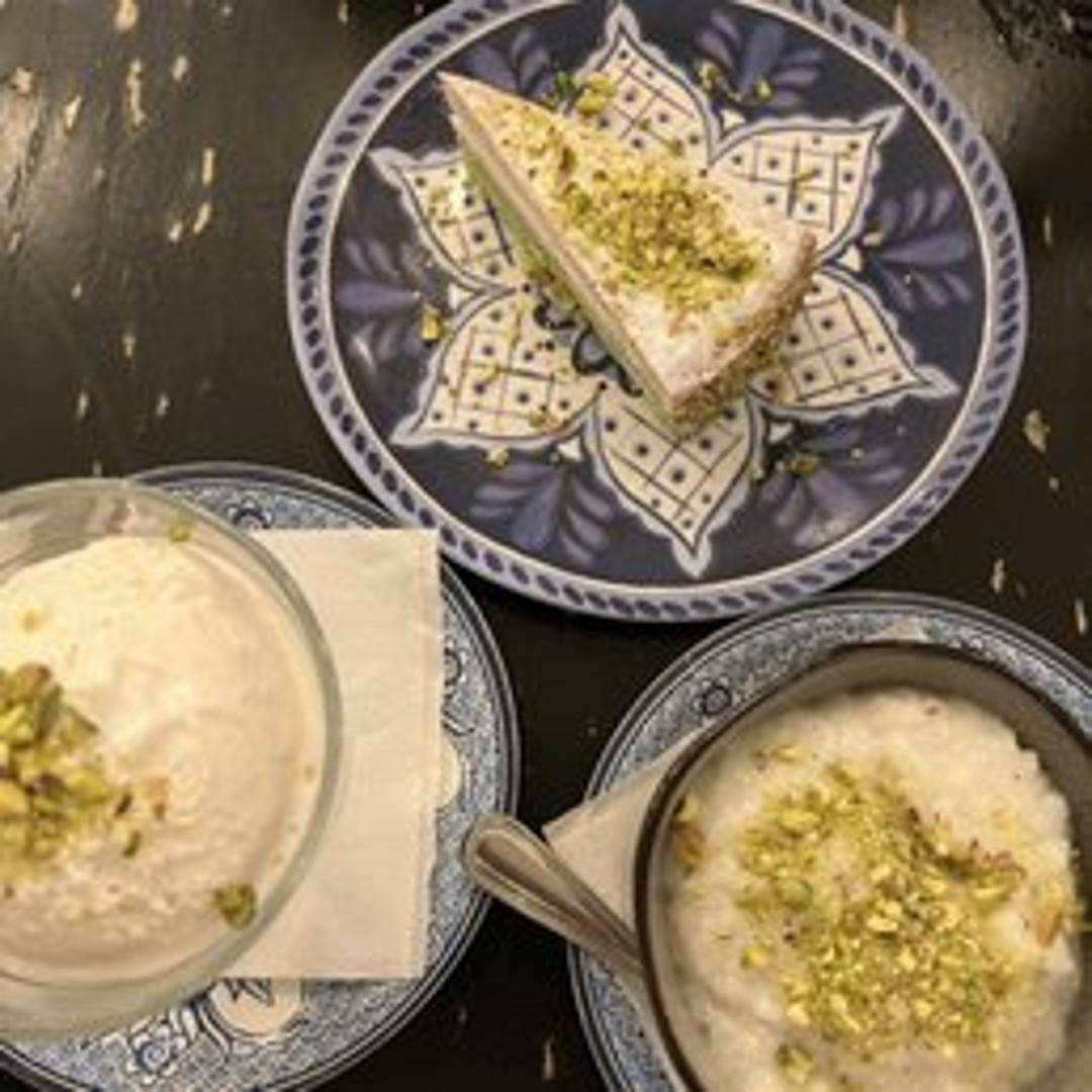 Indulge in Sheer Berenj, a classic Afghan rice pudding that offers a delicate balance of sweetness and creaminess. Made with fragrant rice, milk, and subtle hints of cardamom, it's a soothing and delightful dessert, often garnished with pistachios.