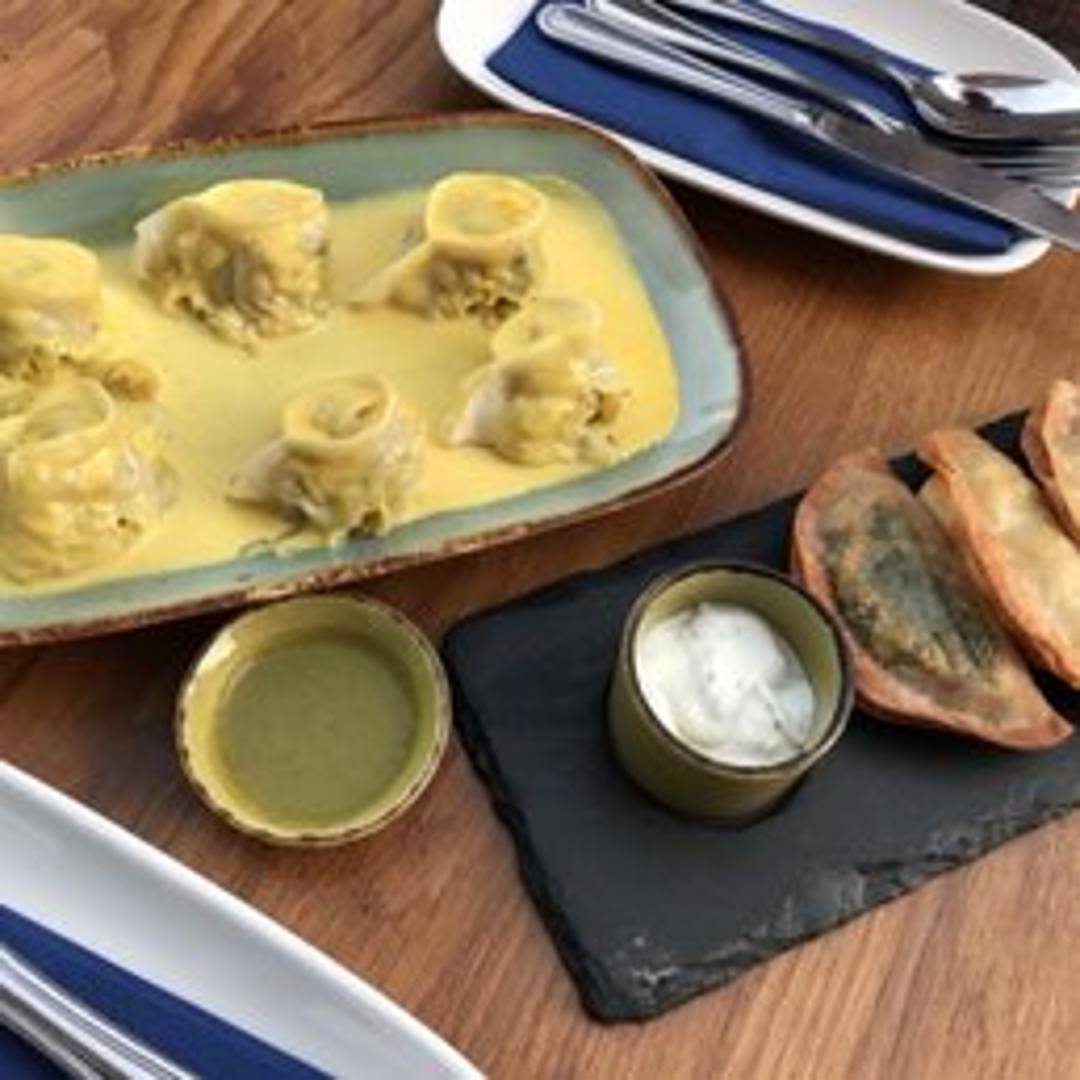 Discover a delightful assortment of three distinct, handcrafted Afghan sambosas. These crispy, golden-fried pastries offer a unique journey through savory fillings, expertly seasoned with traditional spices. Each sambosa in the trio presents a different delectable stuffing, showcasing the rich culinary heritage of Afghanistan, often featuring combinations of spiced potatoes, ground meats, or lentils, encased in a perfectly flaky pastry shell, served with a complementary dipping sauce.