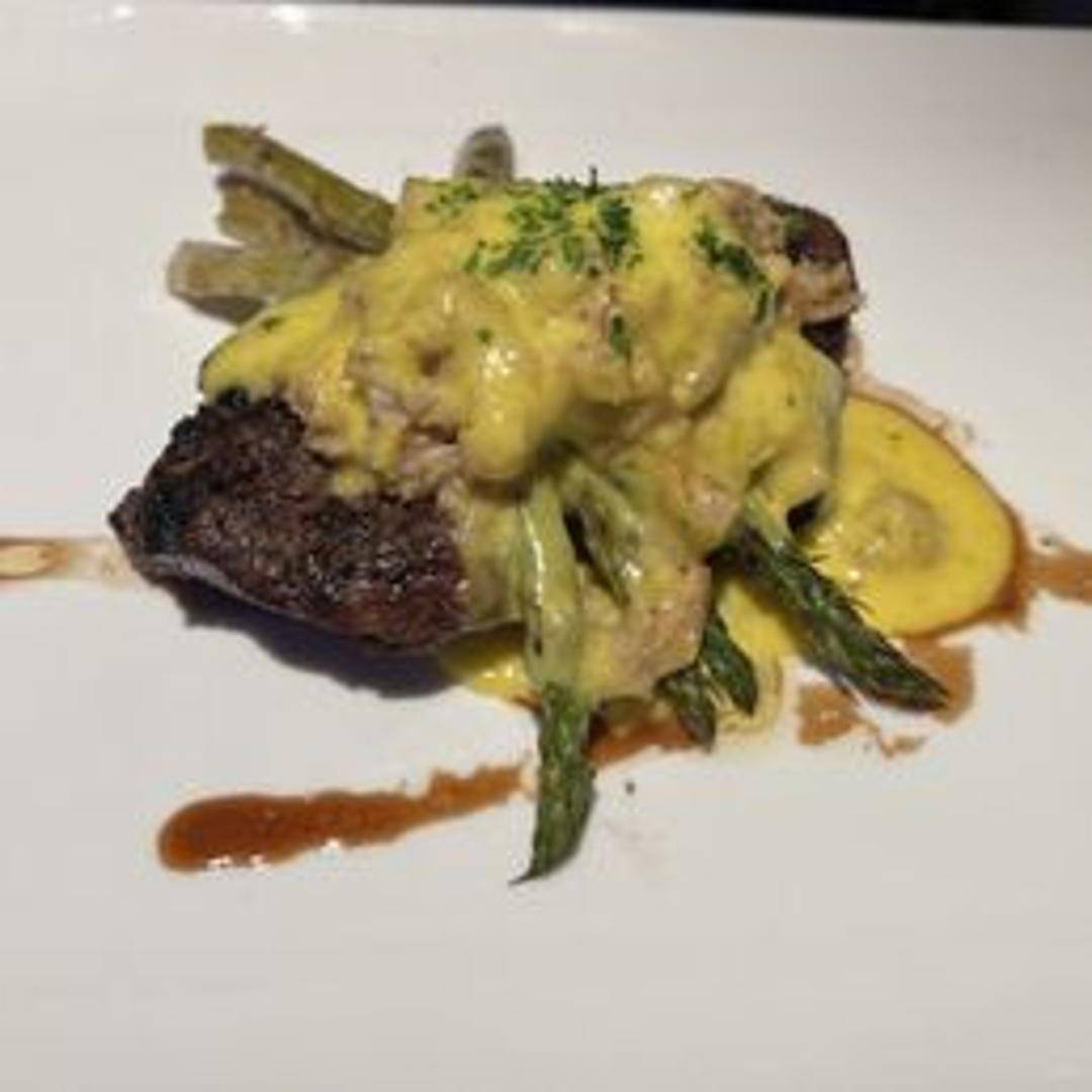 Tender filet mignon topped with lump crab meat, asparagus spears, and classic Béarnaise sauce.