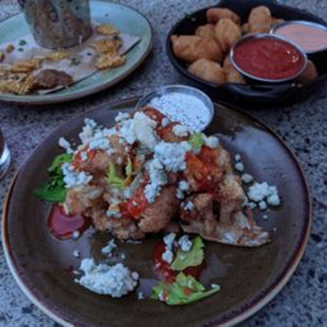 Crispy cauliflower florets tossed in a tangy buffalo sauce, served with celery sticks and your choice of ranch or blue cheese dressing.