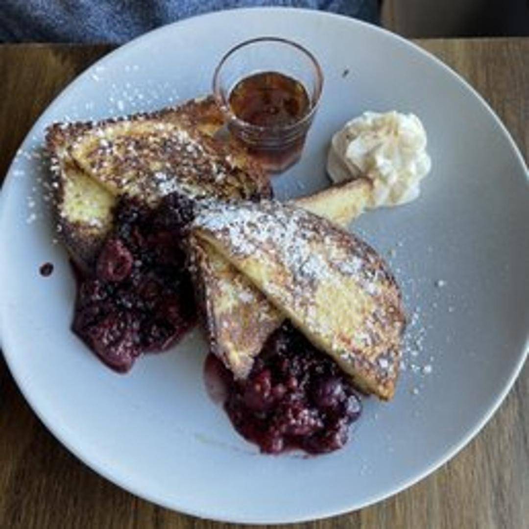 Thick-cut brioche bread soaked in a vanilla custard and griddled to golden perfection, served with maple syrup, berries, and whipped cream.