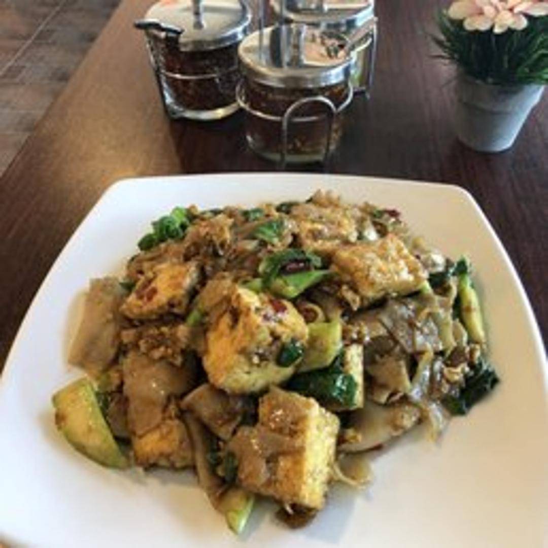 Discover the comforting flavors of Pad See Ew. This beloved stir-fried noodle dish features wide, flat rice noodles expertly wok-tossed with egg and fresh Chinese broccoli in a rich, dark soy sauce. The noodles acquire a delightful smoky char from the high heat of the wok, creating a truly satisfying and savory experience with every bite.