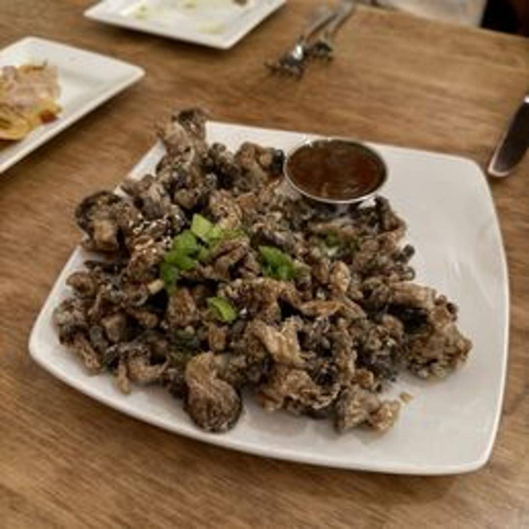 Delicately fried oyster mushrooms, seasoned and battered to mimic the texture and flavor of calamari. Served with a tangy dipping sauce.