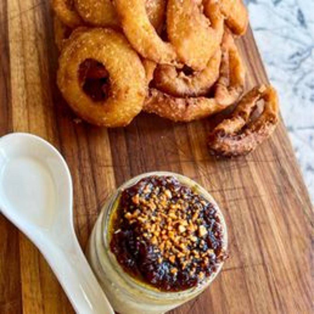 Pan-seared chicken livers served with caramelized onions and a balsamic glaze. A rich and savory appetizer or small plate.
