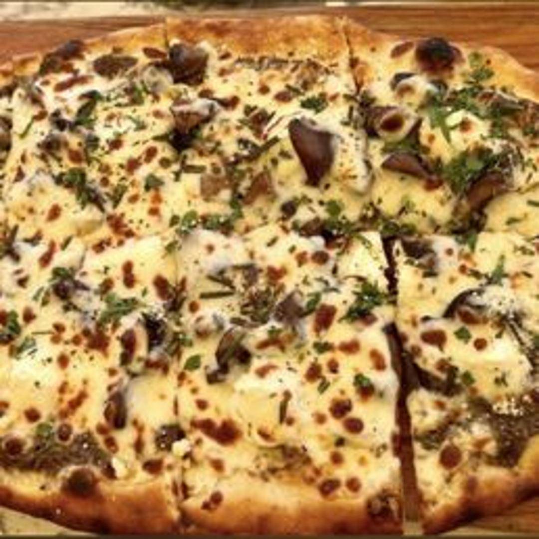 Thin-crust pizza topped with a medley of roasted mushrooms, garlic, truffle oil, fresh mozzarella, and parmesan cheese.