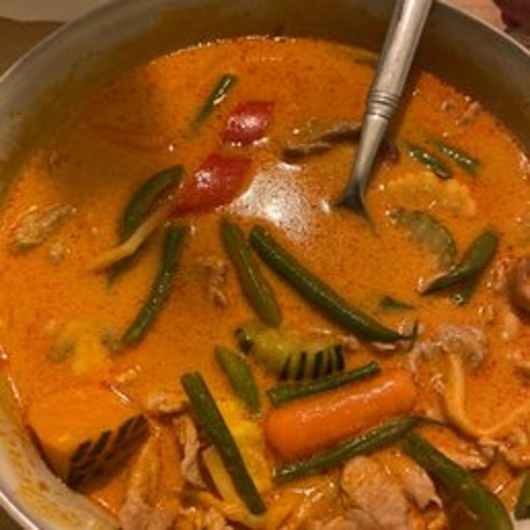 A rich and aromatic Thai curry made with red curry paste, coconut milk, bamboo shoots, bell peppers, and basil. Choose your protein (chicken, beef, pork, tofu, or vegetables). The creamy coconut milk balances the spicy red curry paste, creating a complex and flavorful dish. Served with rice.
