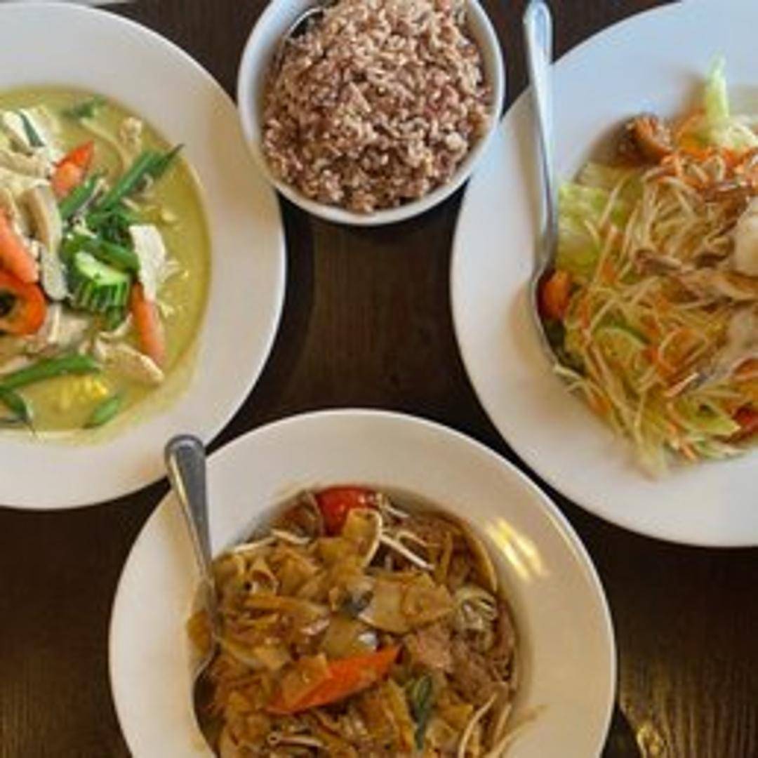 Aromatic and flavorful green curry simmered in coconut milk with bamboo shoots, bell peppers, eggplant, and Thai basil. Choose your protein: chicken, pork, beef, tofu, or shrimp. Served with steamed jasmine rice. A classic Thai curry known for its vibrant green color and mild to medium spice level.