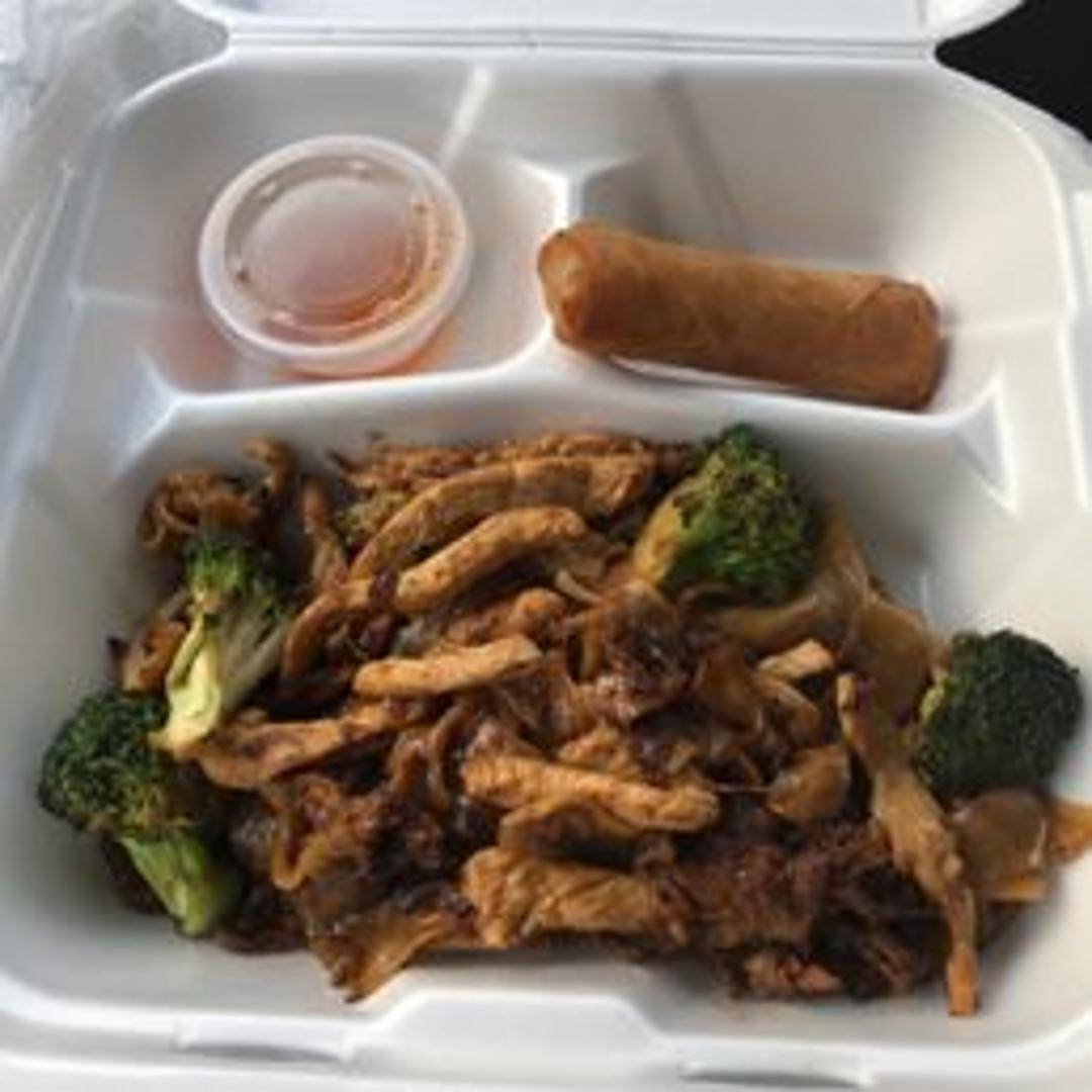 Wide rice noodles stir-fried with Chinese broccoli, egg, and your choice of protein in a savory sweet soy sauce.