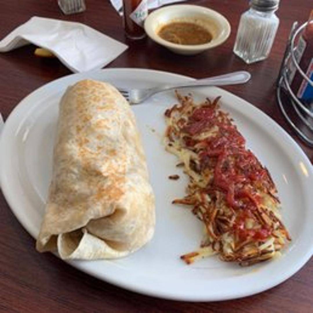 A hearty and satisfying burrito filled with scrambled eggs, your choice of bacon, sausage, or chorizo, cheddar cheese, potatoes, and pico de gallo. Wrapped in a warm flour tortilla.
