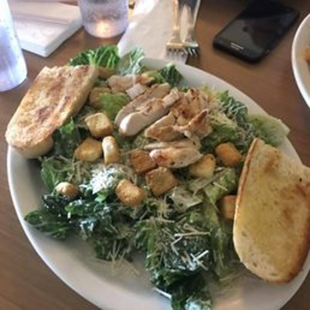 Romaine lettuce tossed in creamy Caesar dressing, topped with grilled chicken breast, crunchy croutons, and a sprinkle of Parmesan cheese.