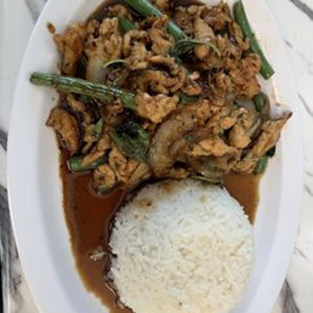 Stir-fried holy basil with your choice of protein, garlic, chili, and soy sauce. Served with jasmine rice.