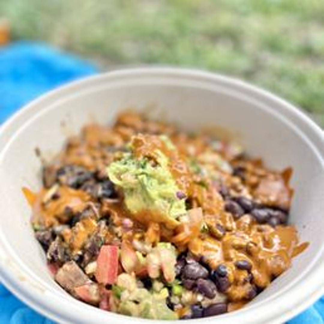 A hearty and satisfying bowl with plant-based carne asada, seasoned to perfection. Served over rice and beans with fresh toppings like pico de gallo, guacamole, and your choice of salsa. A flavorful and filling vegan take on a Mexican staple.