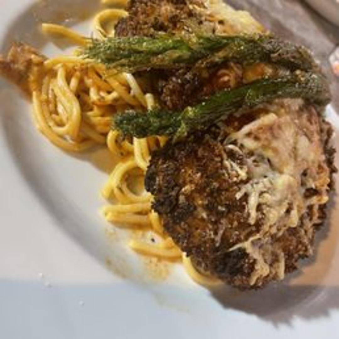 Crispy, breaded chicken breast topped with marinara sauce and melted mozzarella cheese, served on a toasted Italian roll.