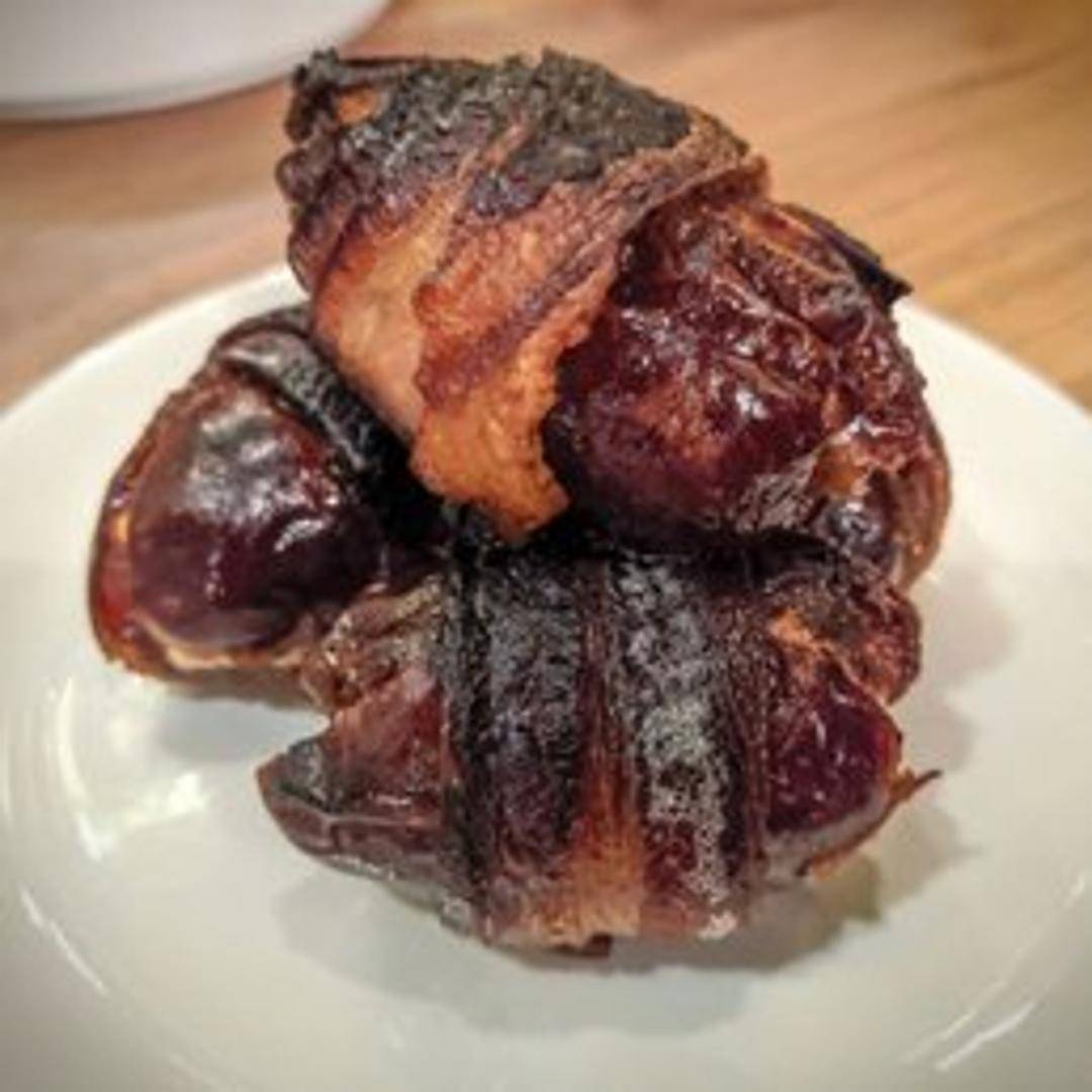 A delectable symphony of sweet and savory flavors. Plump, tender dates are generously wrapped in crispy, savory bacon and baked until caramelized, creating an irresistible appetizer with a delightful chew and crunch.