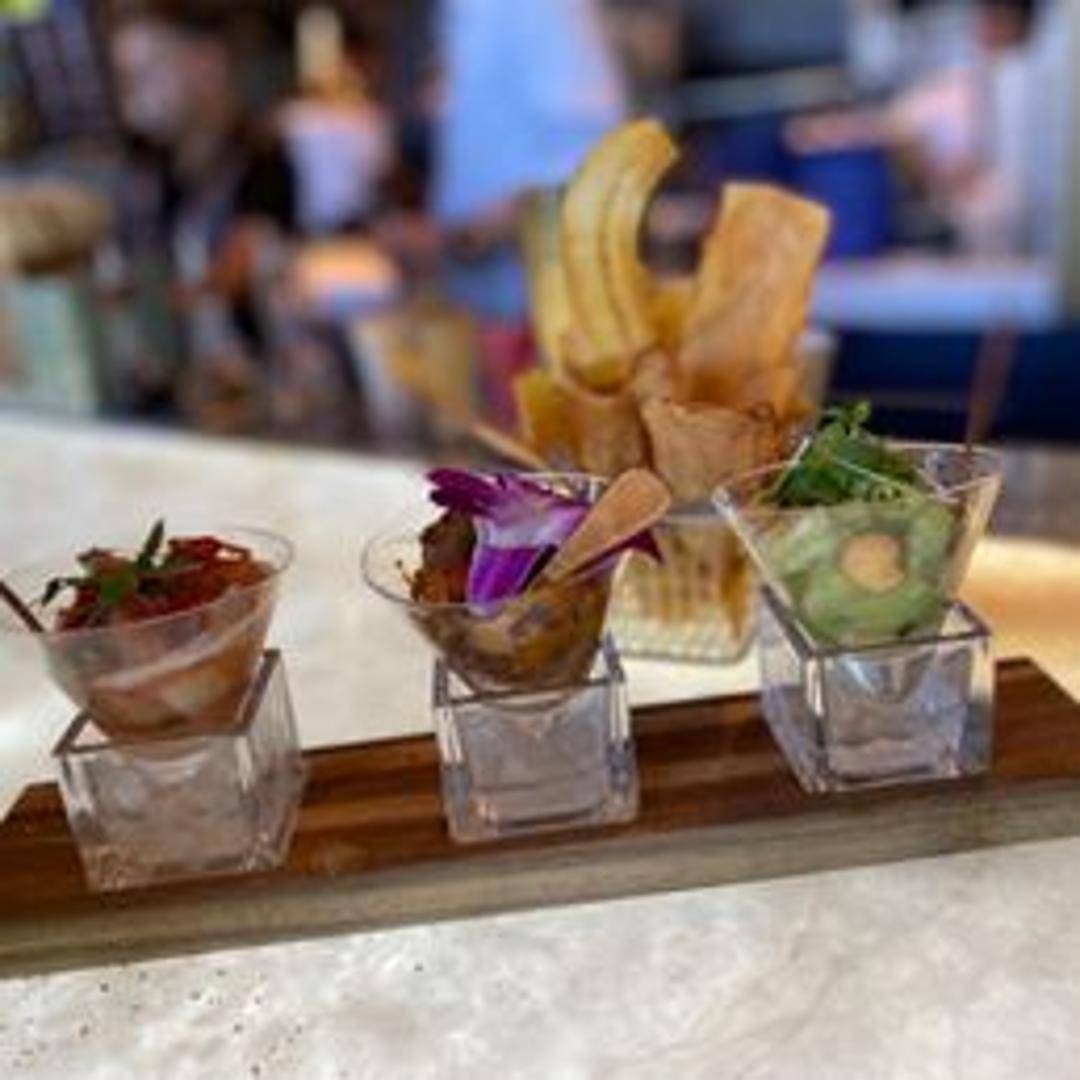 Fresh Kampachi marinated in a vibrant and tangy guava-infused citrus blend. A refreshing ceviche bursting with tropical flavors, balanced with [mention any specific peppers or heat elements if known, otherwise omit: a hint of chili]. Garnished with [mention garnish ingredients like cilantro, red onion, etc. otherwise: fresh herbs]. Served with [mention any accompanying chips or crackers, otherwise omit: crispy tortilla chips].