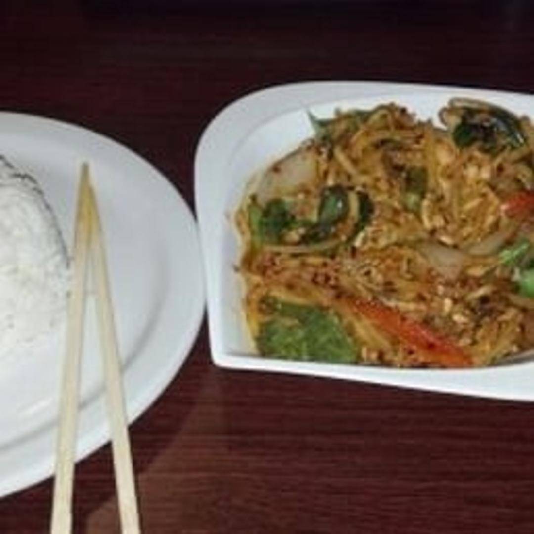 A vibrant and flavorful dish featuring tender bamboo shoots stir-fried with a medley of fresh vegetables, such as bell peppers, onions, and carrots, in a zesty and aromatic spicy sauce. The sauce is expertly crafted with chili peppers, garlic, and other Asian spices to deliver a satisfying kick. This dish is perfect as a vegetarian option or as a side to complement any meal. Served hot and fresh from Little Blue Elephant.