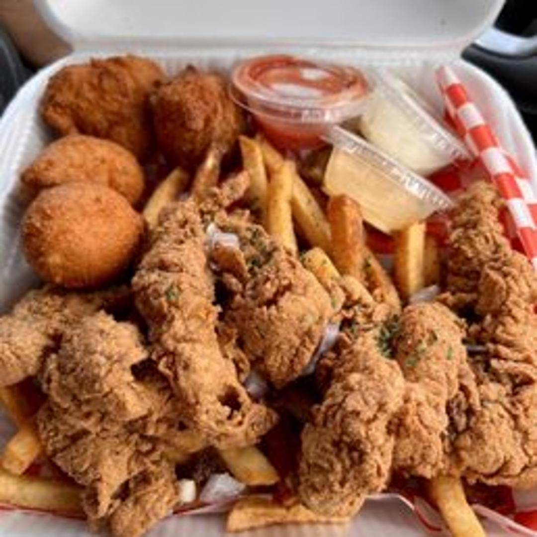 Crispy, golden-fried catfish fillets served with a side of coleslaw and your choice of side. A Southern comfort food classic.