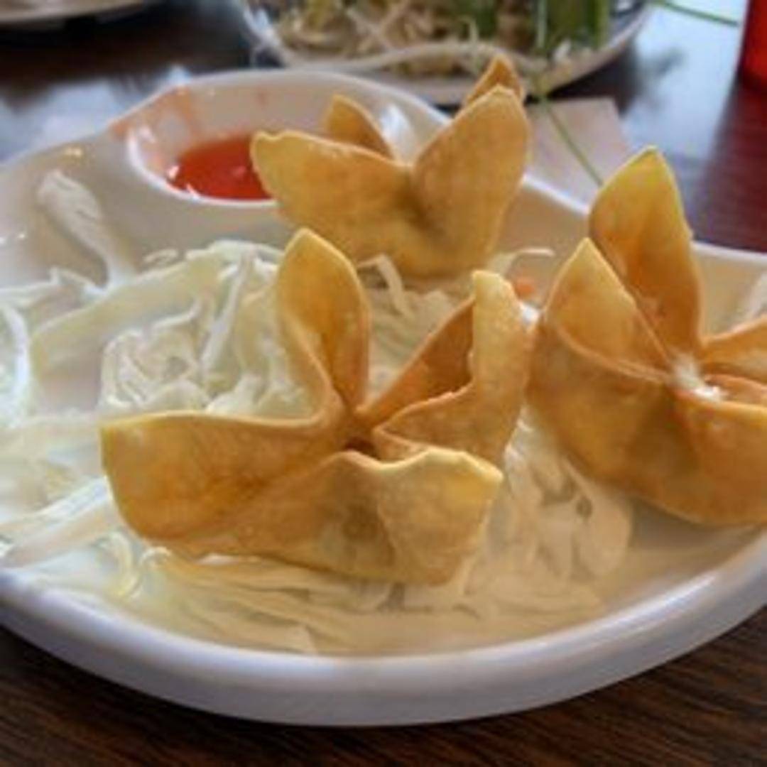 Crispy wonton wrappers filled with a creamy mixture of imitation crab meat and cream cheese. Served with a sweet dipping sauce.