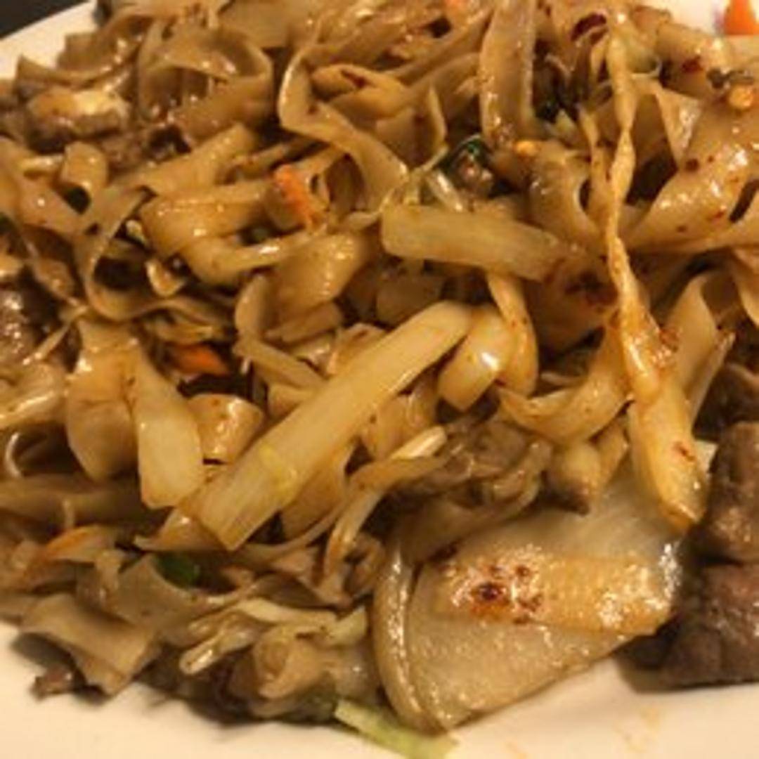 Crispy pan-fried egg noodles topped with a medley of meats (typically chicken, beef, and shrimp), vegetables (such as broccoli, carrots, and bok choy), and a savory sauce. The noodles are both crunchy and soft, offering a delightful textural contrast.