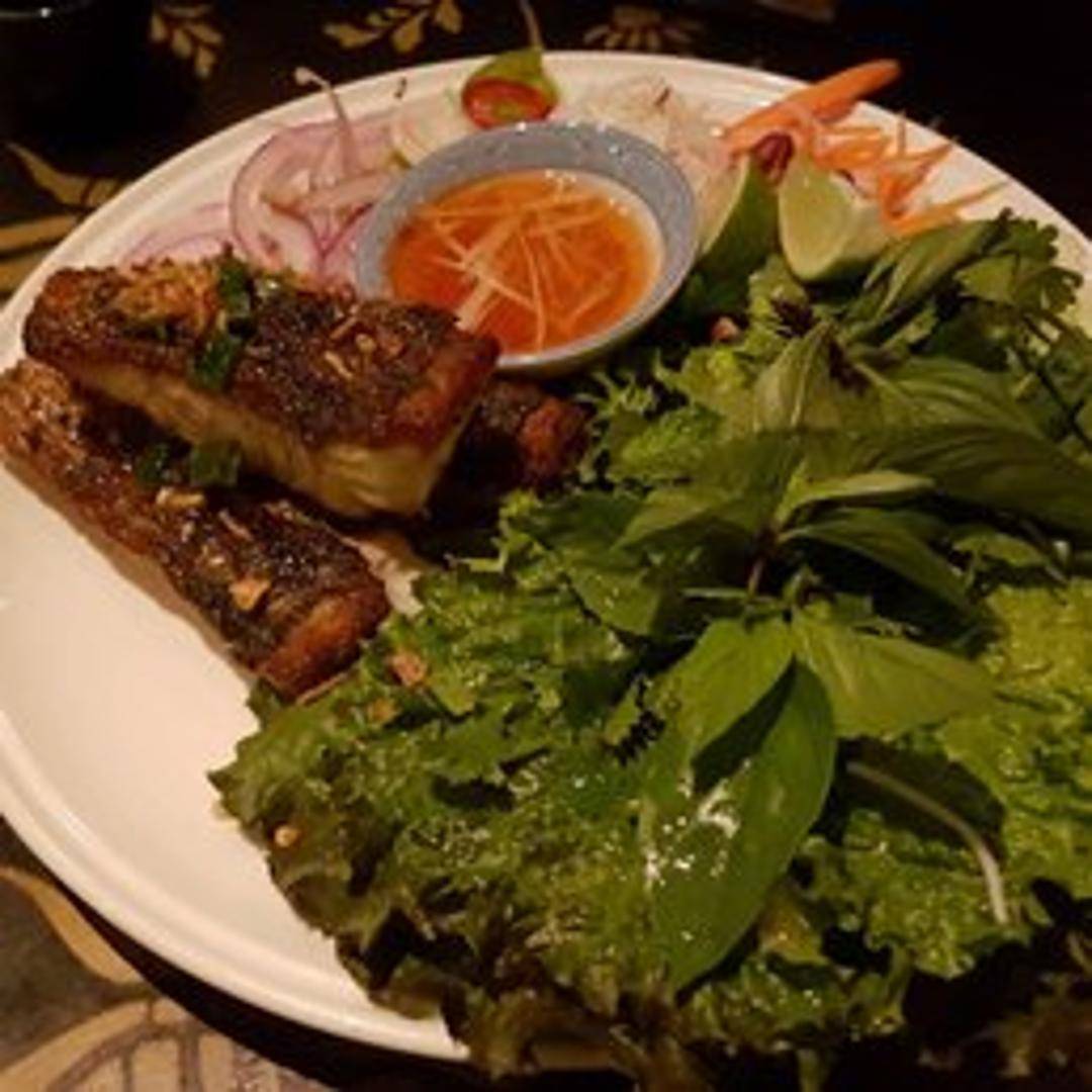 Indulge in the crispy perfection of the Fried Sea Bass at Little Sister. This dish presents a whole or filleted sea bass, expertly fried to achieve an exquisitely crispy skin while maintaining a moist, flaky, and tender interior. Typically served with a dynamic and flavorful sauce, which could range from a tangy chili-lime dressing to a sweet and sour glaze, it's often garnished with fresh herbs and aromatics, making it a show-stopping main course that's rich in flavor and texture.