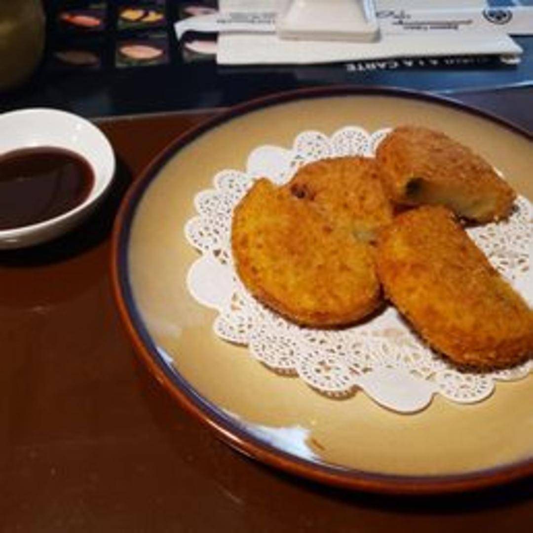 A deep-fried, breaded patty. It commonly contains a creamy filling of mashed potatoes mixed with ground meat, vegetables, or seafood.