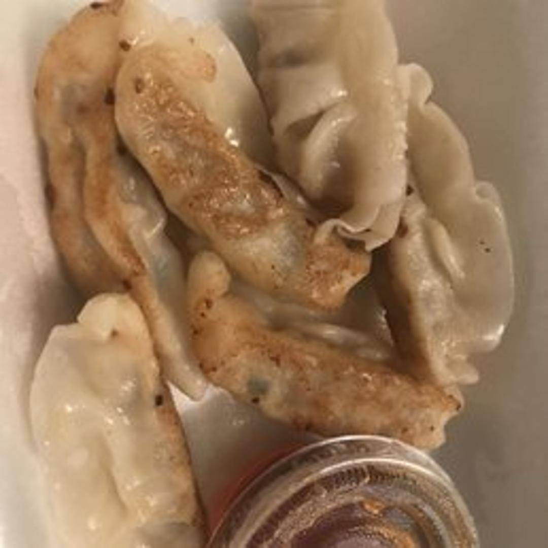 Pan-fried Japanese dumplings filled with a savory mixture of ground pork, cabbage, chives, and ginger. Served with a side of soy-based dipping sauce.