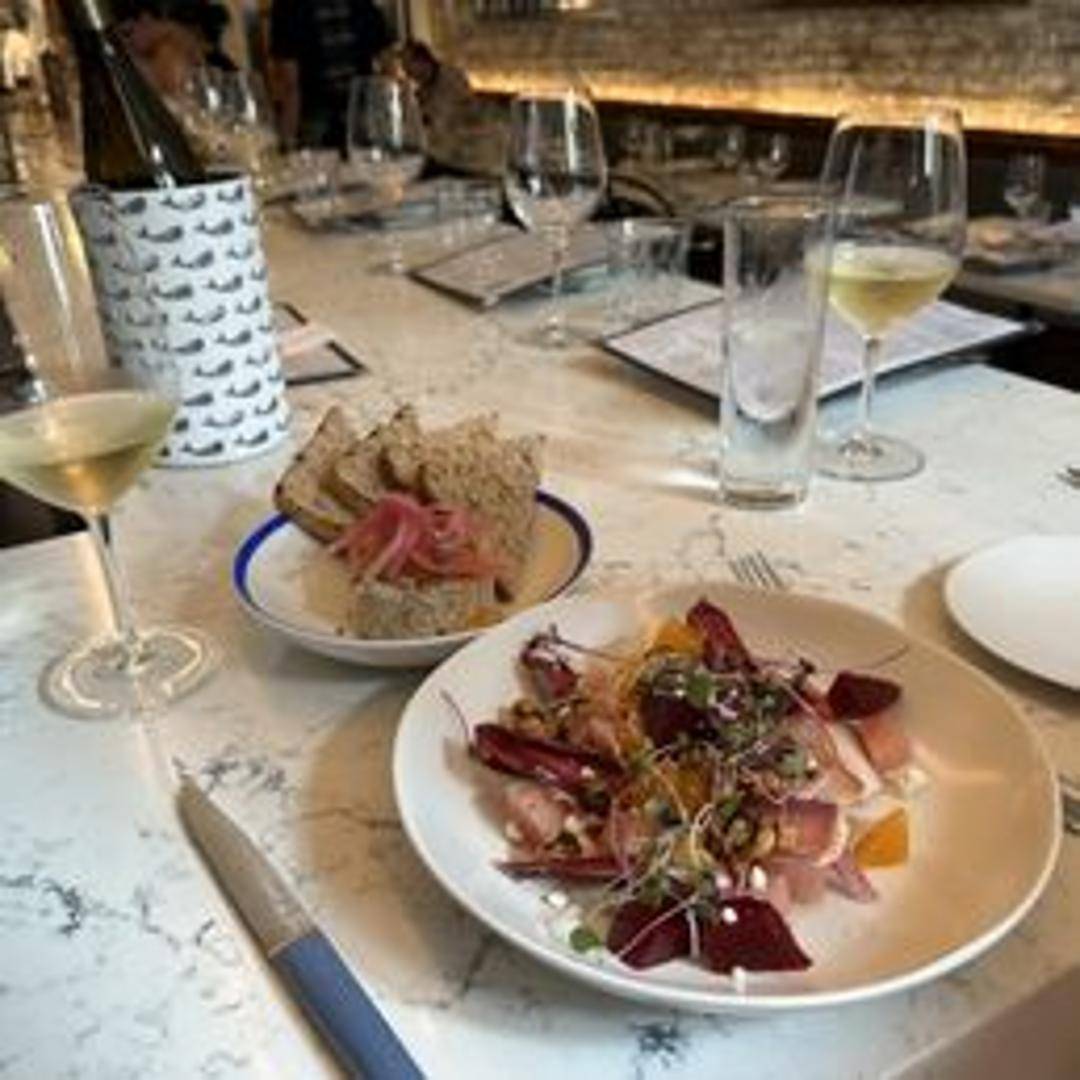 Roasted beets tossed with goat cheese, candied walnuts, and a balsamic vinaigrette. Features earthy beets, creamy goat cheese, and a crunchy sweetness from the walnuts, all complemented by the tangy vinaigrette.