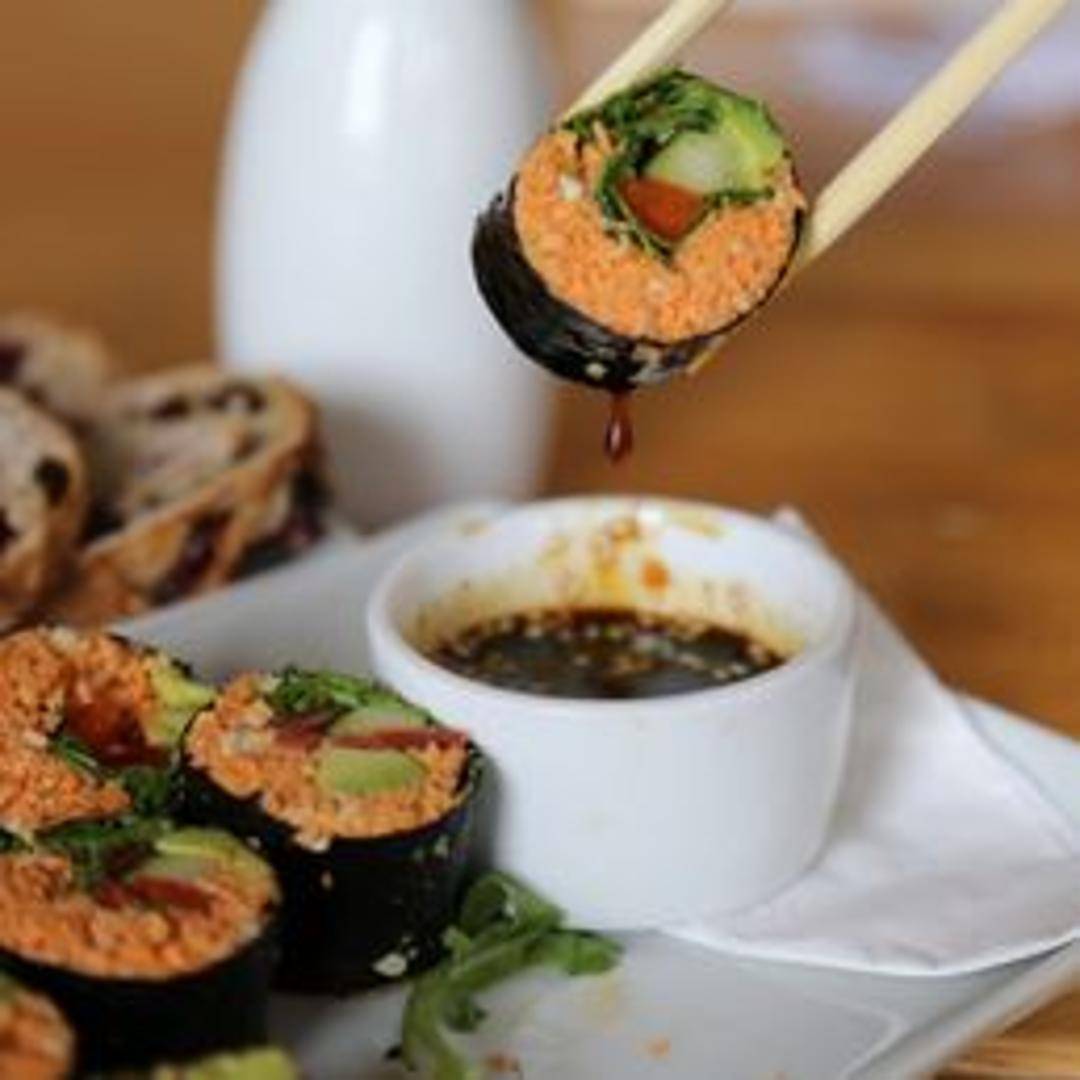 A delightful and unique take on a classic, our Sweet Potato Sushi Roll offers a harmonious blend of textures and flavors. Perfectly roasted sweet potato, creamy avocado, and crunchy cucumber are artfully rolled with seasoned brown rice and nori. Drizzled with a delicate tamari-ginger glaze and sprinkled with toasted sesame seeds, it’s a sweet and savory sensation.