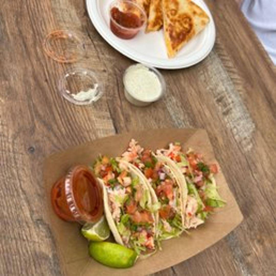 Grilled flour tortilla filled with tender lobster meat, melted cheese, peppers, onions, and a blend of savory spices, served with a side of sour cream and salsa.