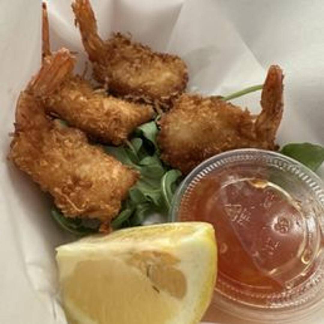 Succulent shrimp coated in shredded coconut and fried to a golden crisp. Served with a dipping sauce.