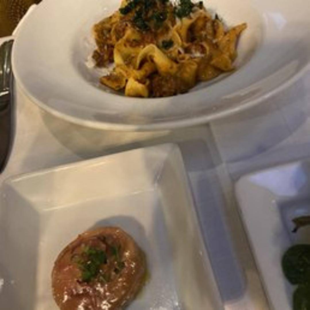 A creamy and decadent Foie Gras Torchon, cured in-house. Served chilled with toasted brioche, fruit compote, and a balsamic reduction.