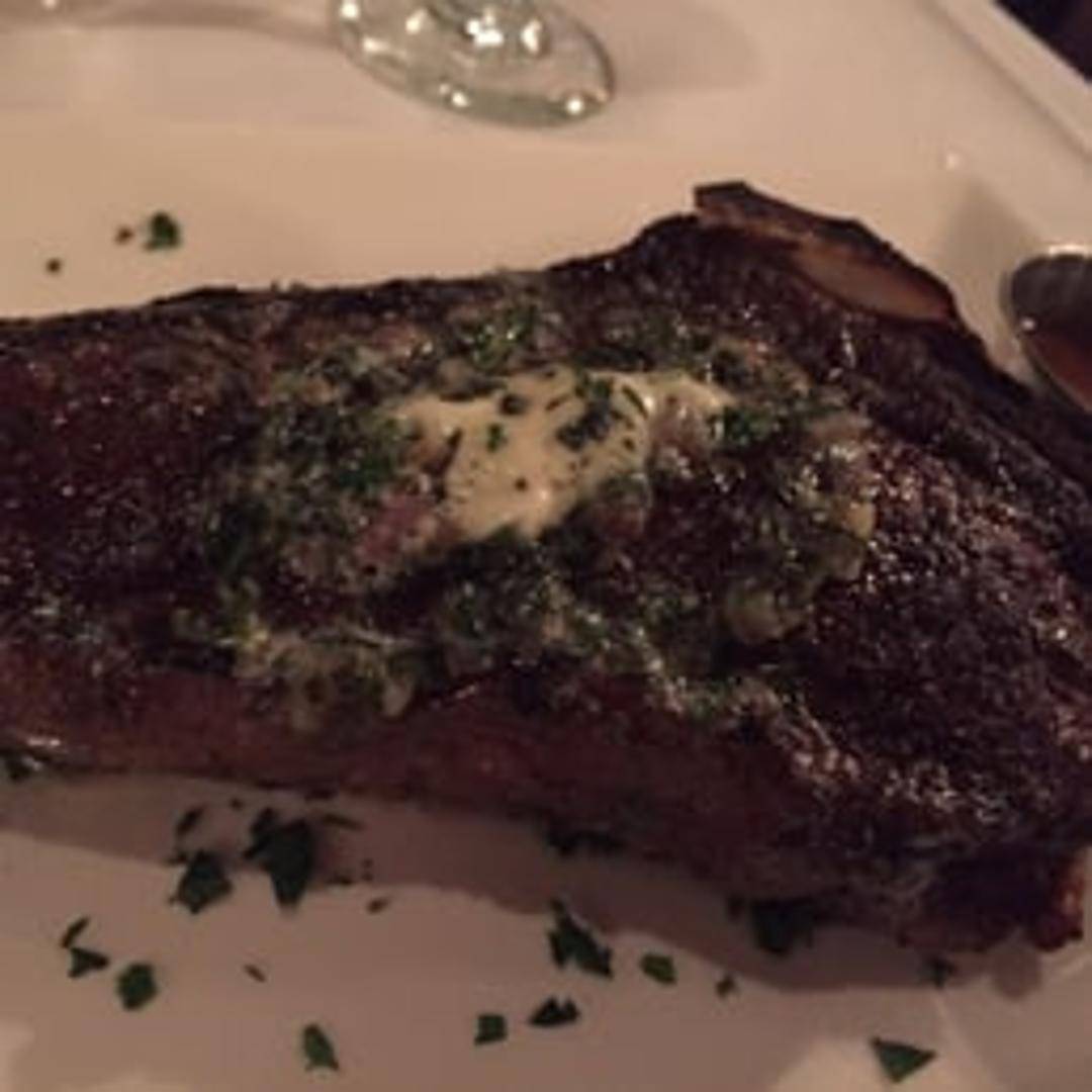 A generously sized, bone-in ribeye steak that has been dry-aged to enhance its flavor and tenderness. This cut boasts a rich, beefy taste with nutty and earthy undertones, amplified by the dry-aging process. Grilled to your preferred temperature and served with a choice of accompaniments.