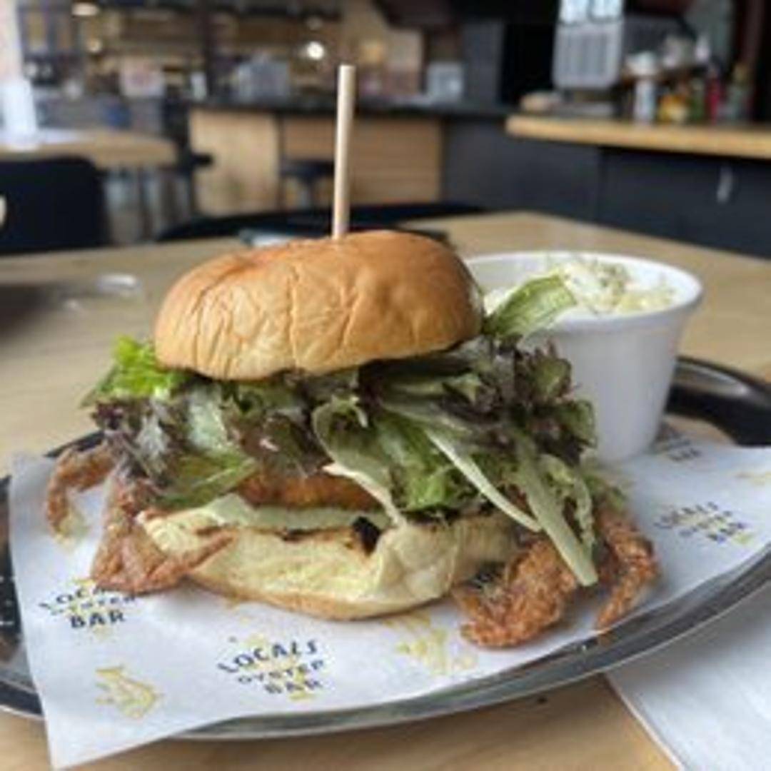 A delicious sandwich featuring fresh, locally sourced blue crab meat, typically served on a toasted bun or bread. May include complementary ingredients such as lettuce, tomato, and a flavorful sauce like aioli or remoulade.