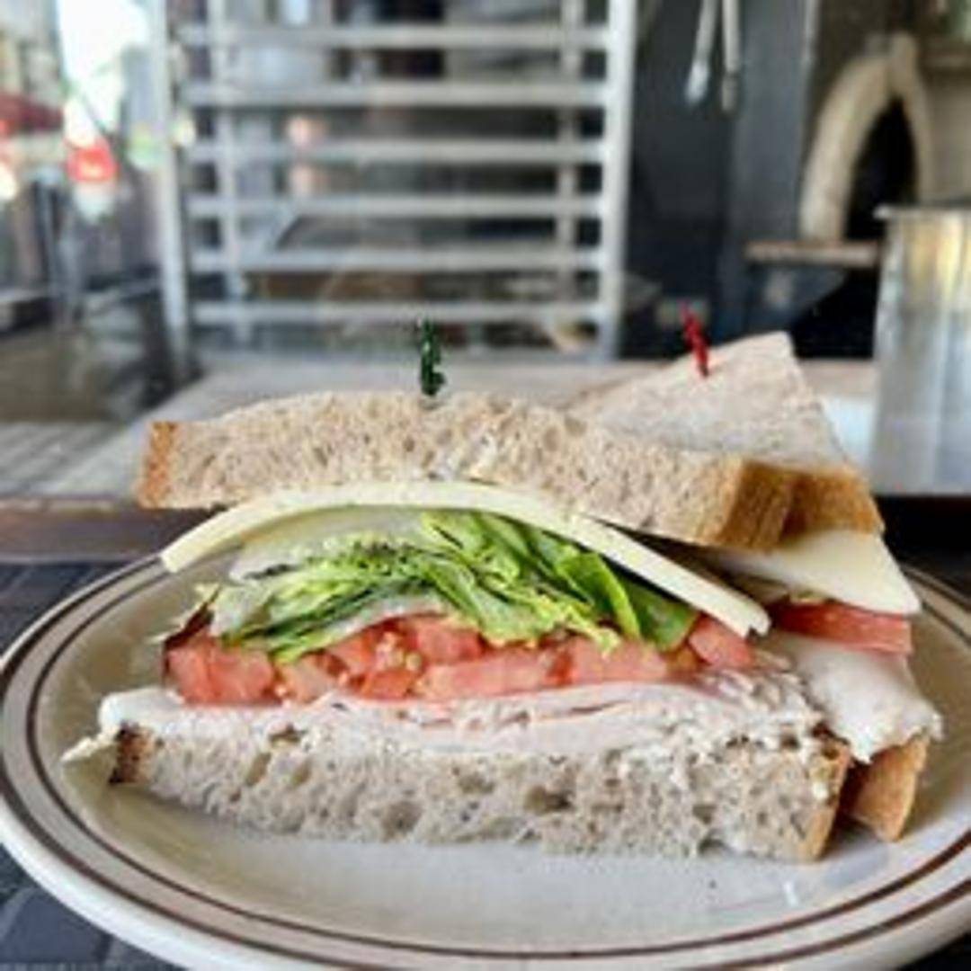 Sliced turkey piled high on Lodge Bread with lettuce, tomato, and your choice of spreads. May contain other ingredients; inquire about current offerings.
