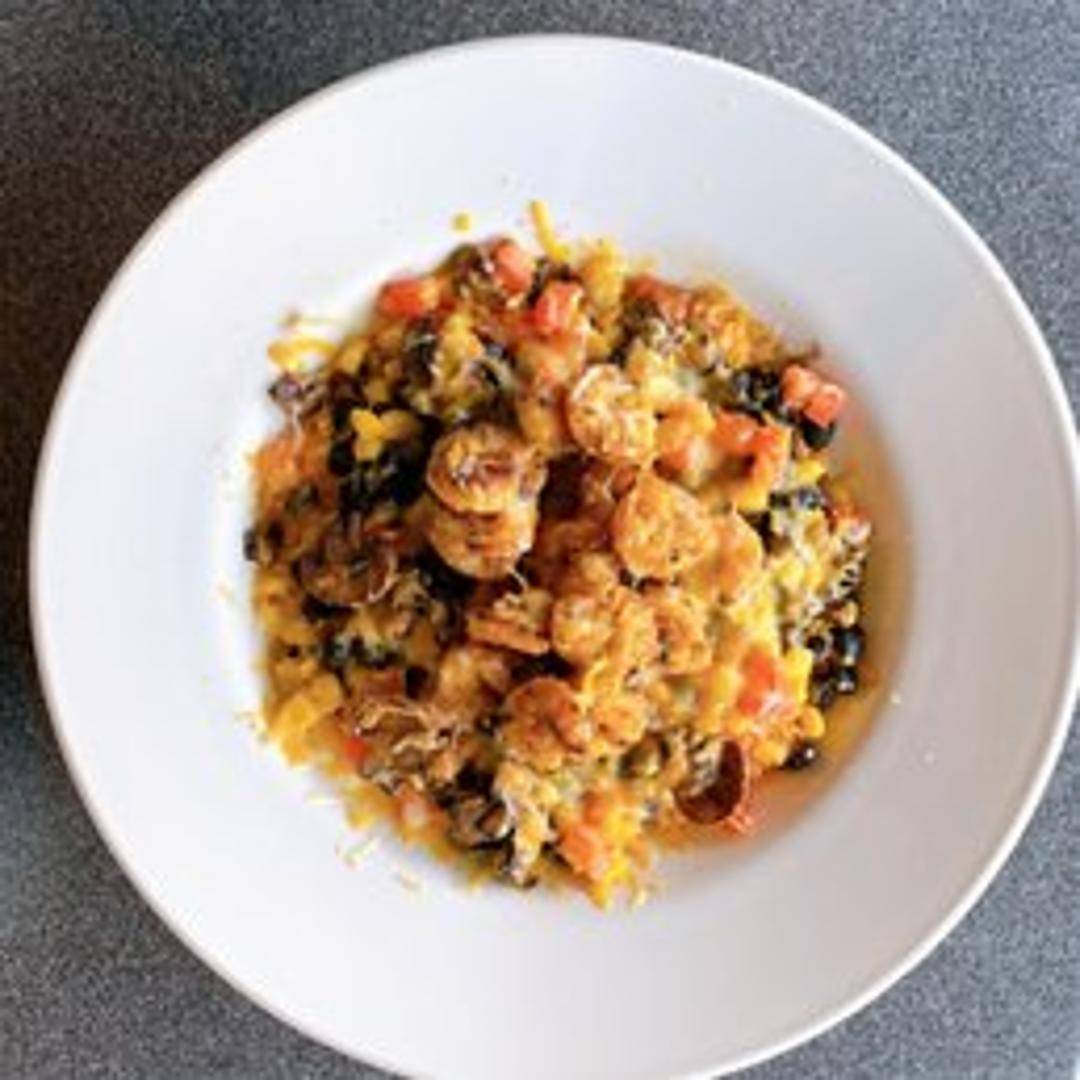 Sizzling fajita vegetables (onions and bell peppers) and your choice of grilled chicken, steak, or shrimp served over cilantro lime rice and black beans. Topped with pico de gallo, guacamole, and sour cream.