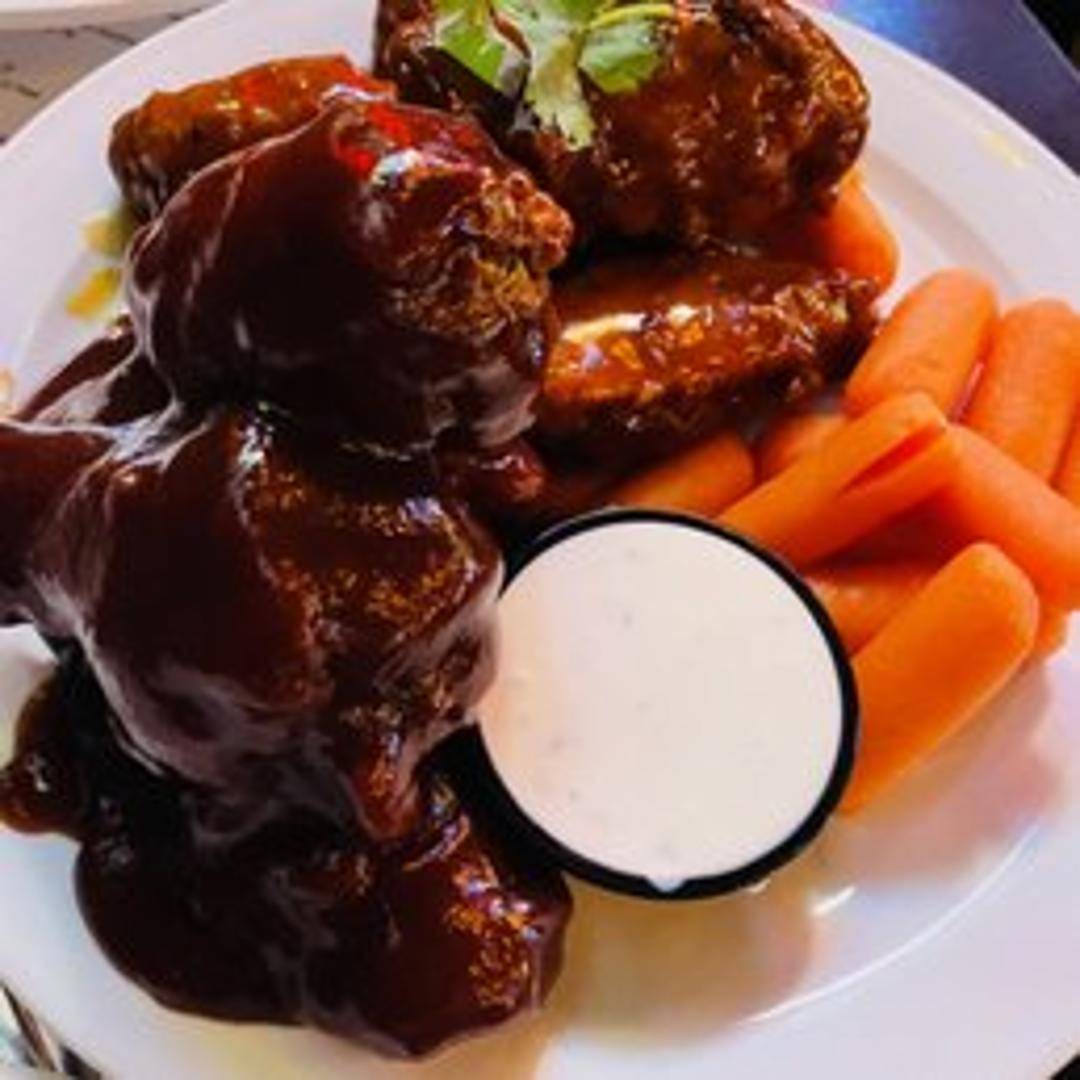Crispy fried chicken wings tossed in your choice of sauce: classic buffalo, BBQ, teriyaki, or lemon pepper. Served with celery sticks and ranch or blue cheese dressing.