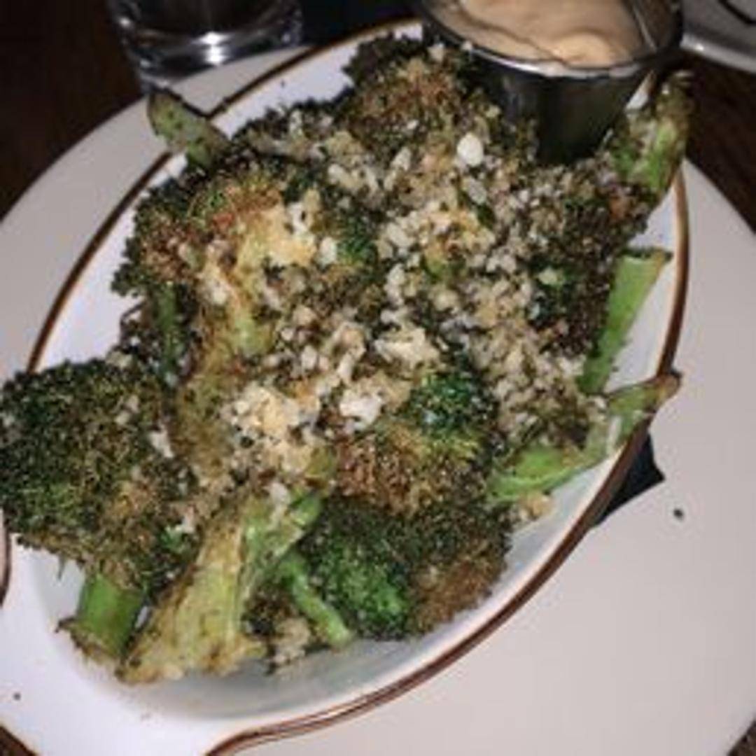 Fresh broccoli florets expertly cooked at high heat to achieve a beautiful char, enhancing their natural sweetness and imparting a delightful smoky flavor. Seasoned simply to highlight its unique texture and taste.