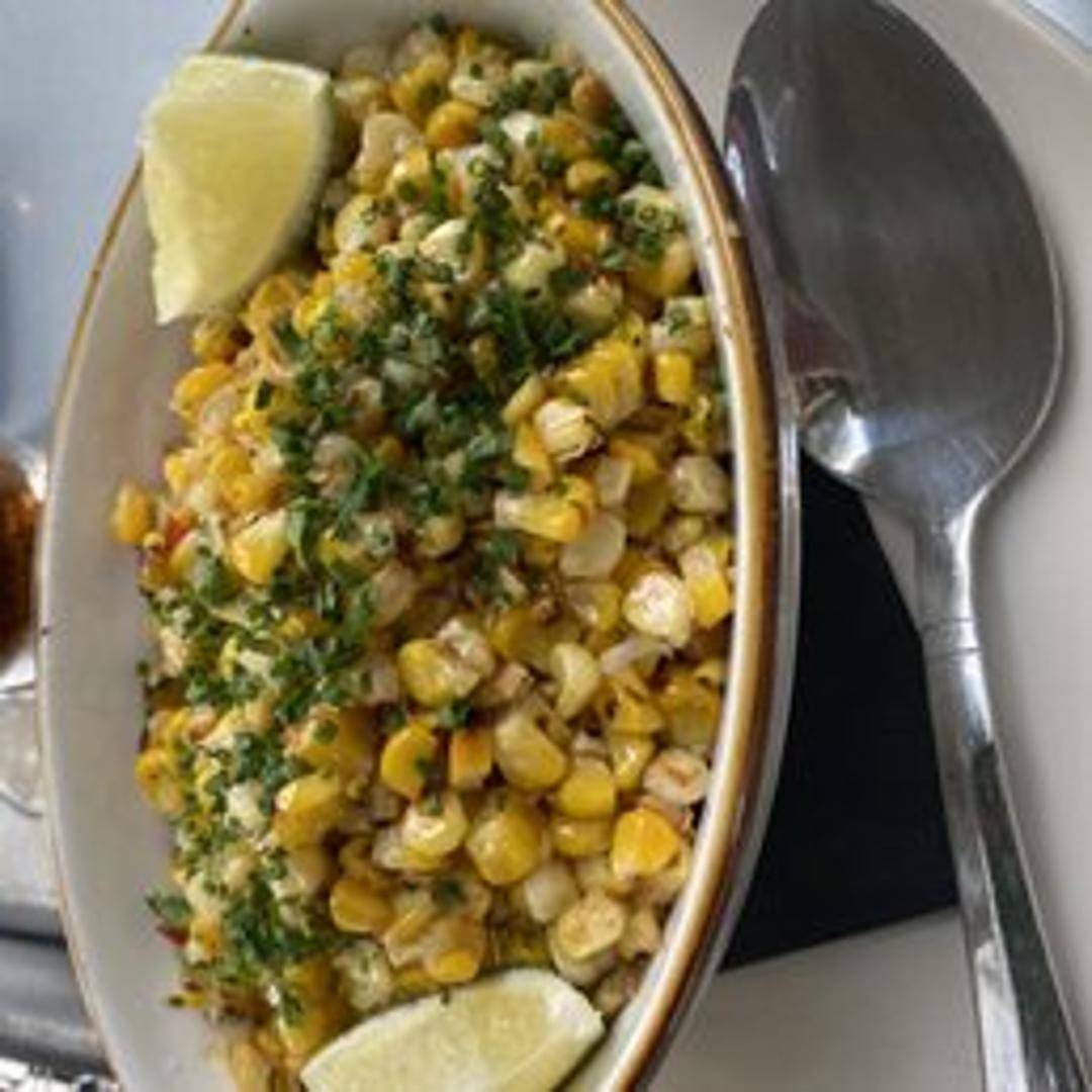 Losanti's sophisticated rendition of the classic Mexican street corn. A tender ear of sweet corn, grilled to perfection with a slight char, is generously slathered in a creamy, tangy sauce, typically a blend of mayonnaise or crema and rich cotija cheese. It's elegantly seasoned with a sprinkle of chili powder or a smoky paprika blend, a hint of fresh lime, and often garnished with fresh cilantro, delivering a vibrant fusion of sweet, savory, and zesty flavors.