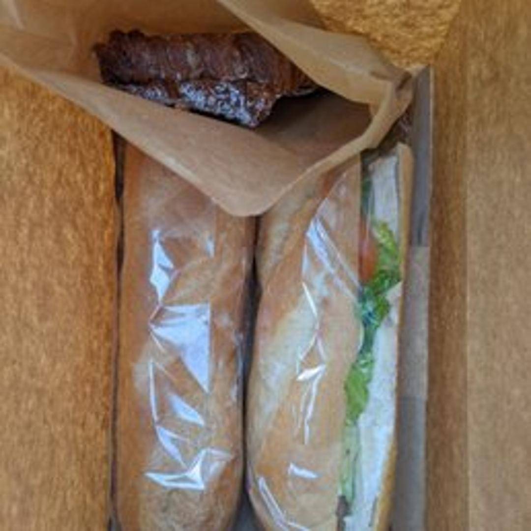 A classic sandwich featuring thinly sliced smoked salmon, often accompanied by cream cheese, fresh dill, and perhaps capers or red onion, on a baguette or artisanal bread. Expect a balance of savory and slightly salty flavors, with a creamy texture.