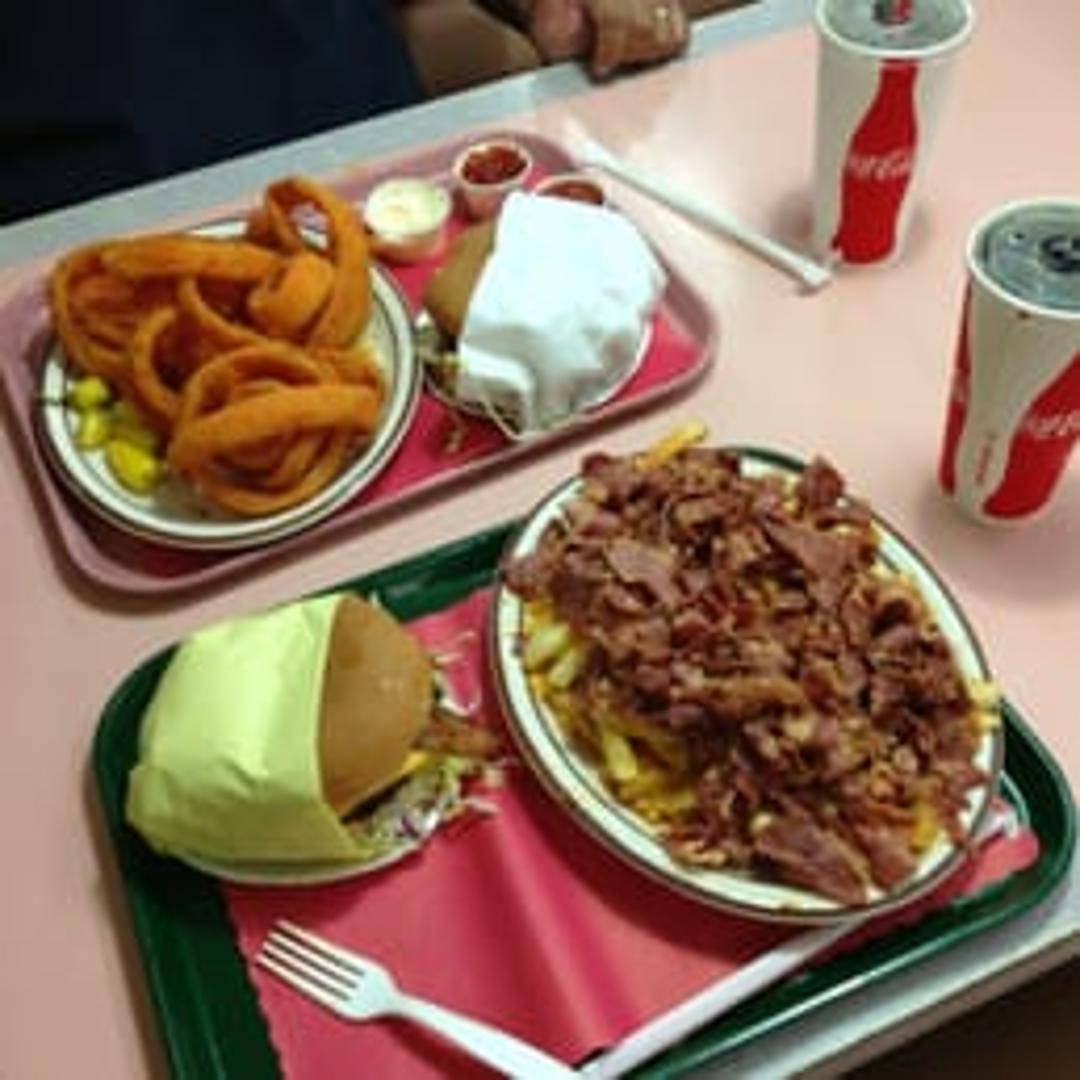 Two juicy beef patties topped with double the crispy bacon, melted cheese, lettuce, tomato, onion, and your choice of sauce on a toasted bun.