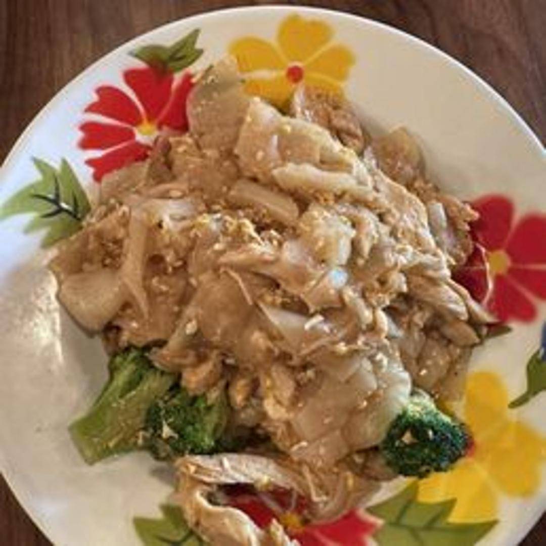 Wide rice noodles stir-fried with your choice of protein, Chinese broccoli, egg, and a savory dark soy sauce.