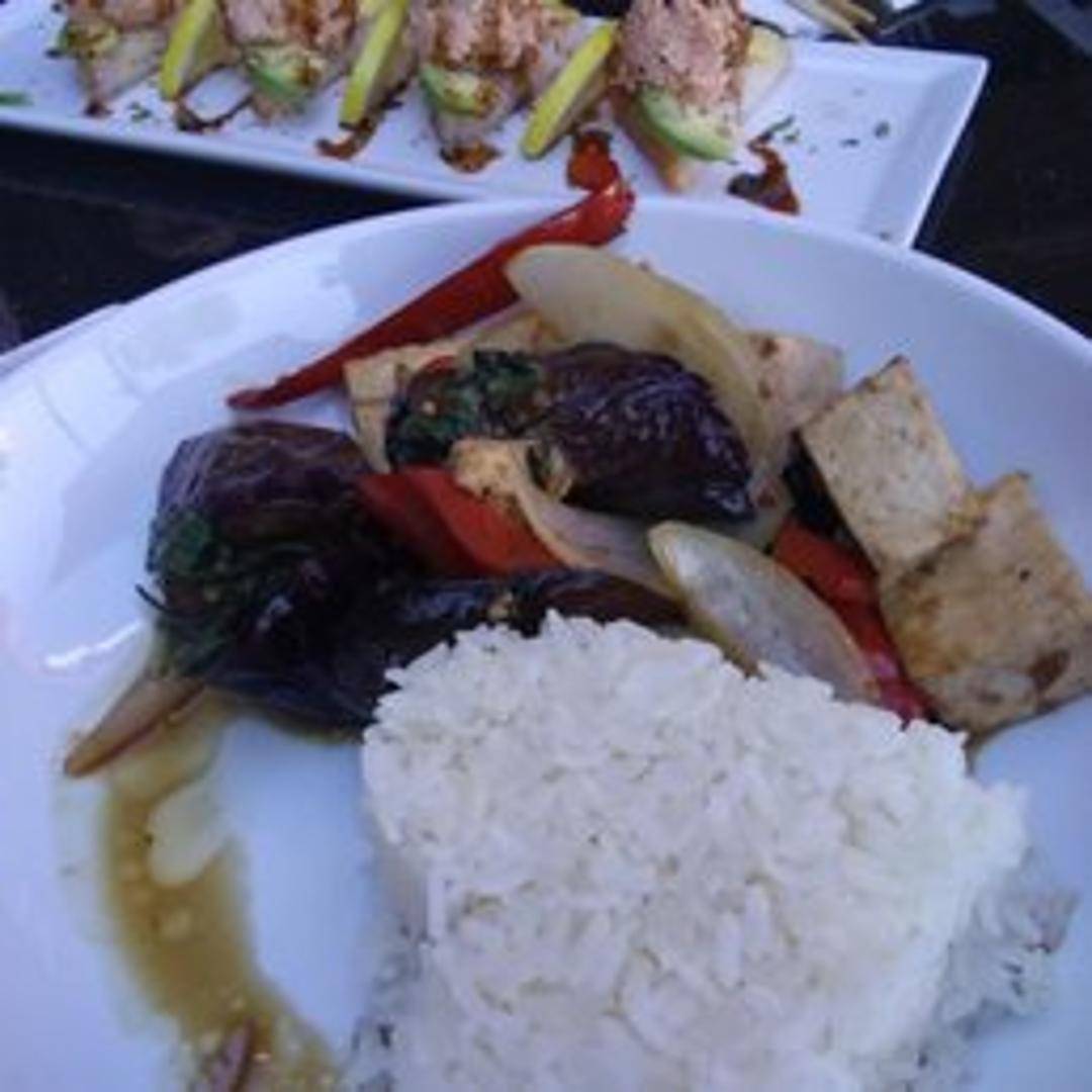 Stir-fried eggplant with basil, bell peppers, onions, garlic, and chilies in a flavorful brown sauce. Your choice of protein (tofu, chicken, beef, or shrimp) can be added.