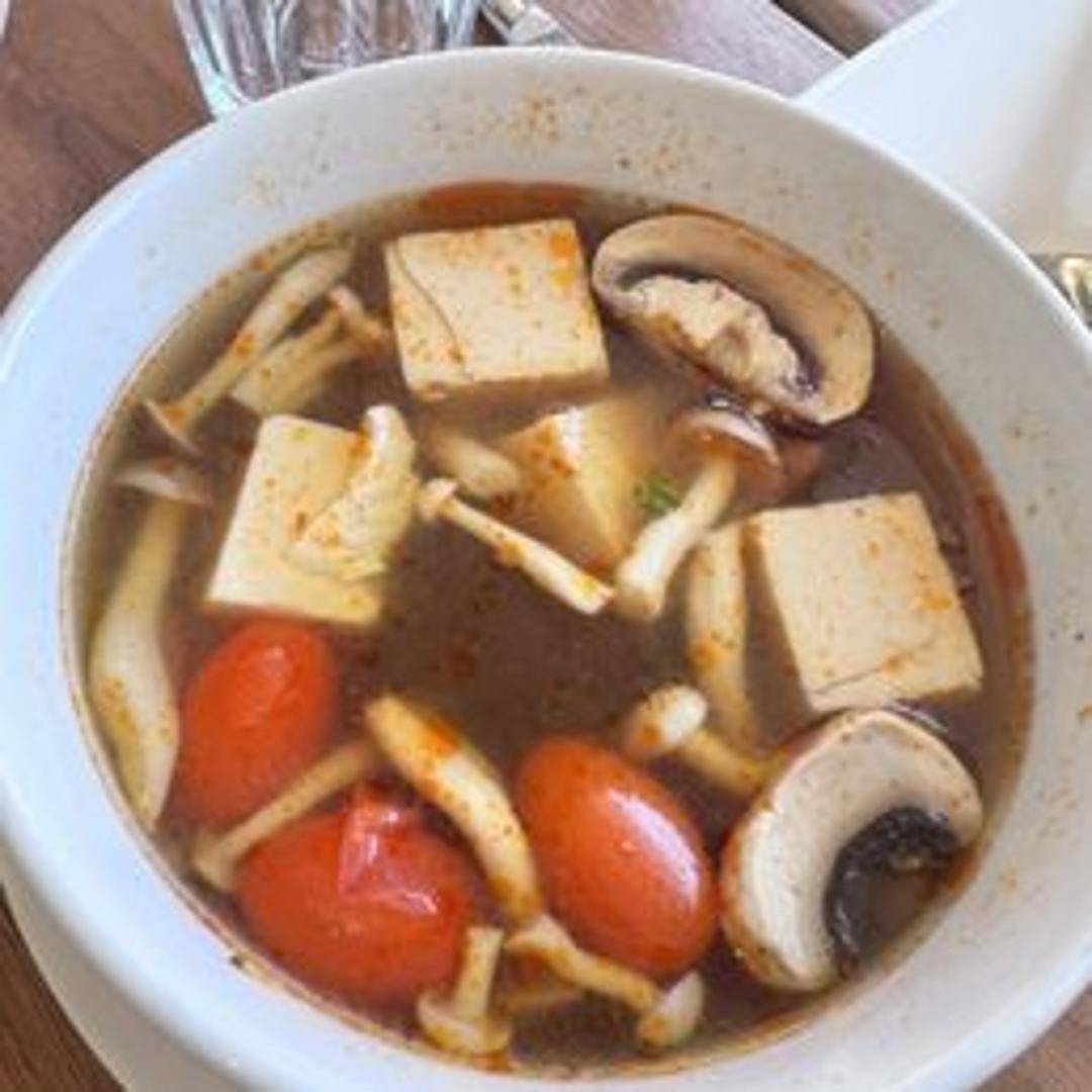 A classic hot and sour Thai soup infused with lemongrass, galangal, kaffir lime leaves, chili, and mushrooms. Available with your choice of shrimp, chicken, or vegetables.