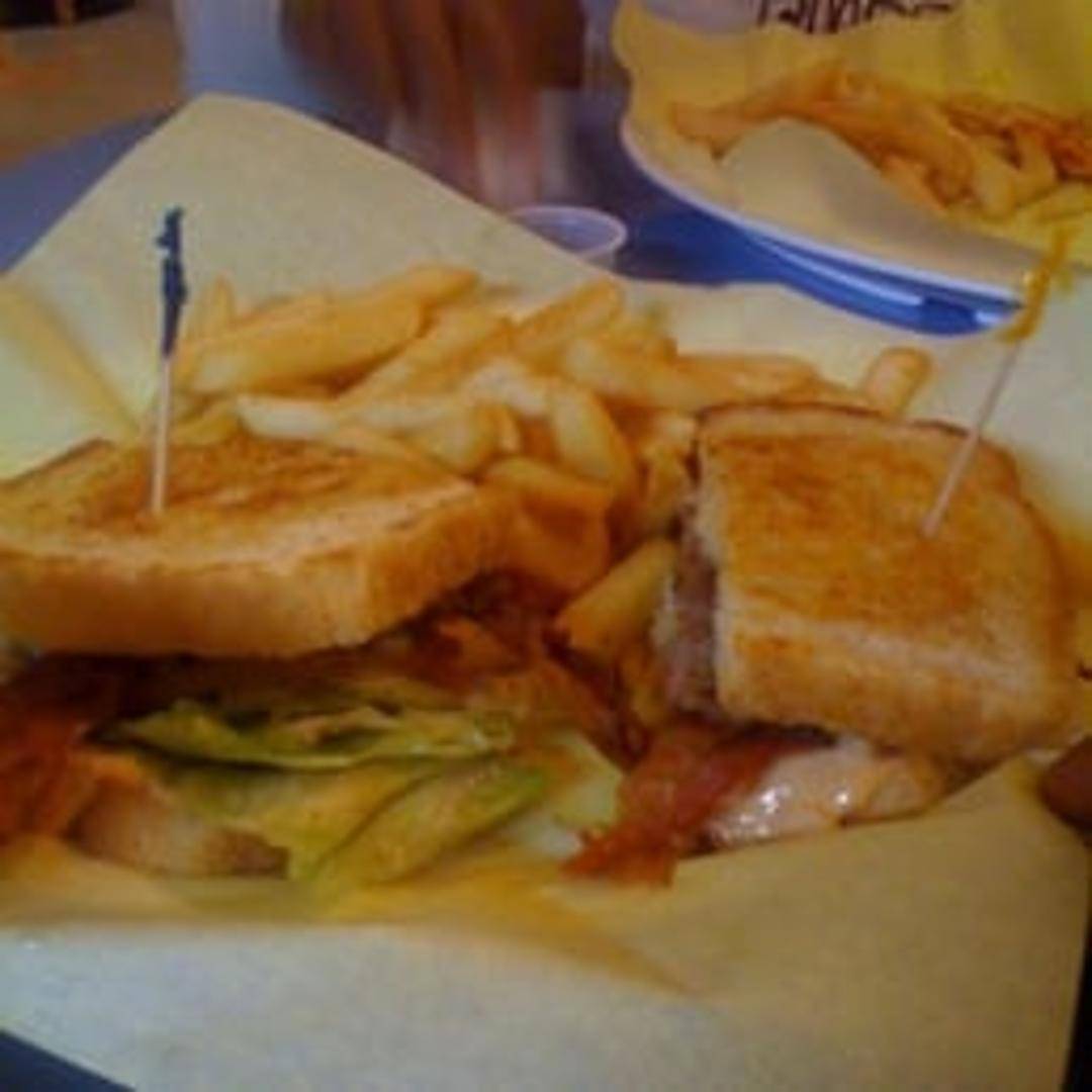 A 1/4 pound beef patty served on a toasted bun, typically with classic burger toppings such as lettuce, tomato, onion, pickles, and special sauce. May include cheese.